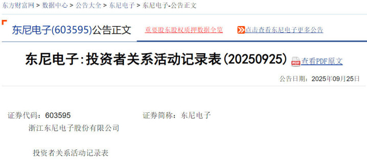 股票索赔平台微信公众号“公义之星”讯,2025年9月25日,东尼电子(603595)在业绩说明会上表示:(1)无线充电隔磁材料主要供应国际大客户,已于2025年5月底开始供应其新机型的无线充电隔磁材料。(2)与宁德时代合作的主要产品为柔性线路板,目前已持续规模化交付其定点项目。(3)与立讯精密合作主要在消费电子业务,向其供应无线充电隔磁材料、超微细线材等产品。